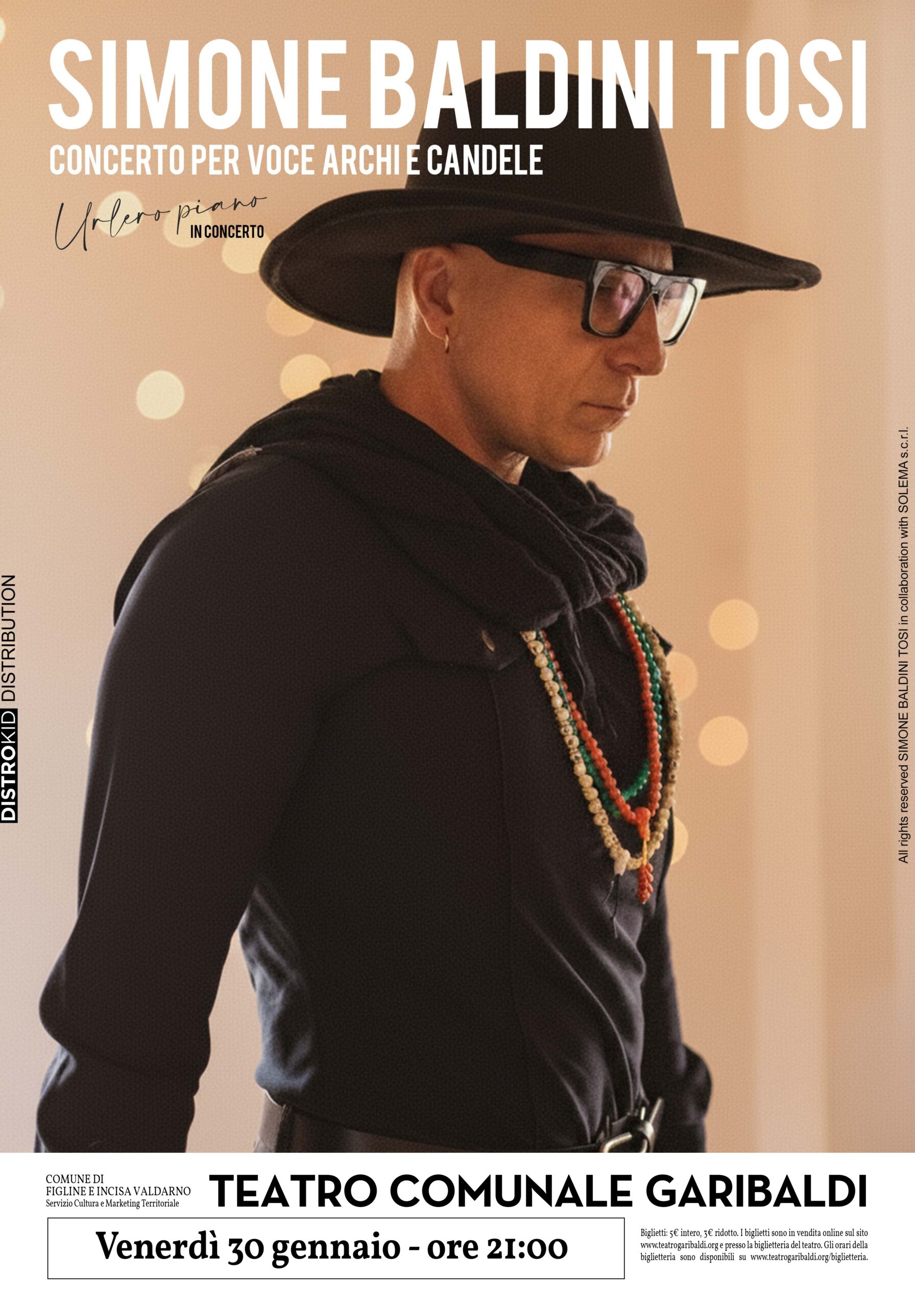 Una serata sospesa tra arte, musica e suggestione. Sarà un’atmosfera fuori dal tempo quella che avvolgerà il foyer del Teatro Comunale Garibaldi il prossimo 30 gennaio, alle 21, quando il cantautore Simone Baldini Tosi porterà in scena il suo “Concerto per voci, archi e candele”. Non si tratta di un semplice spettacolo, ma di un’esperienza sensoriale completa, dove la voce del musicista si fonderà con il suono degli archi in una scenografia calda e suggestiva, illuminata da candele.