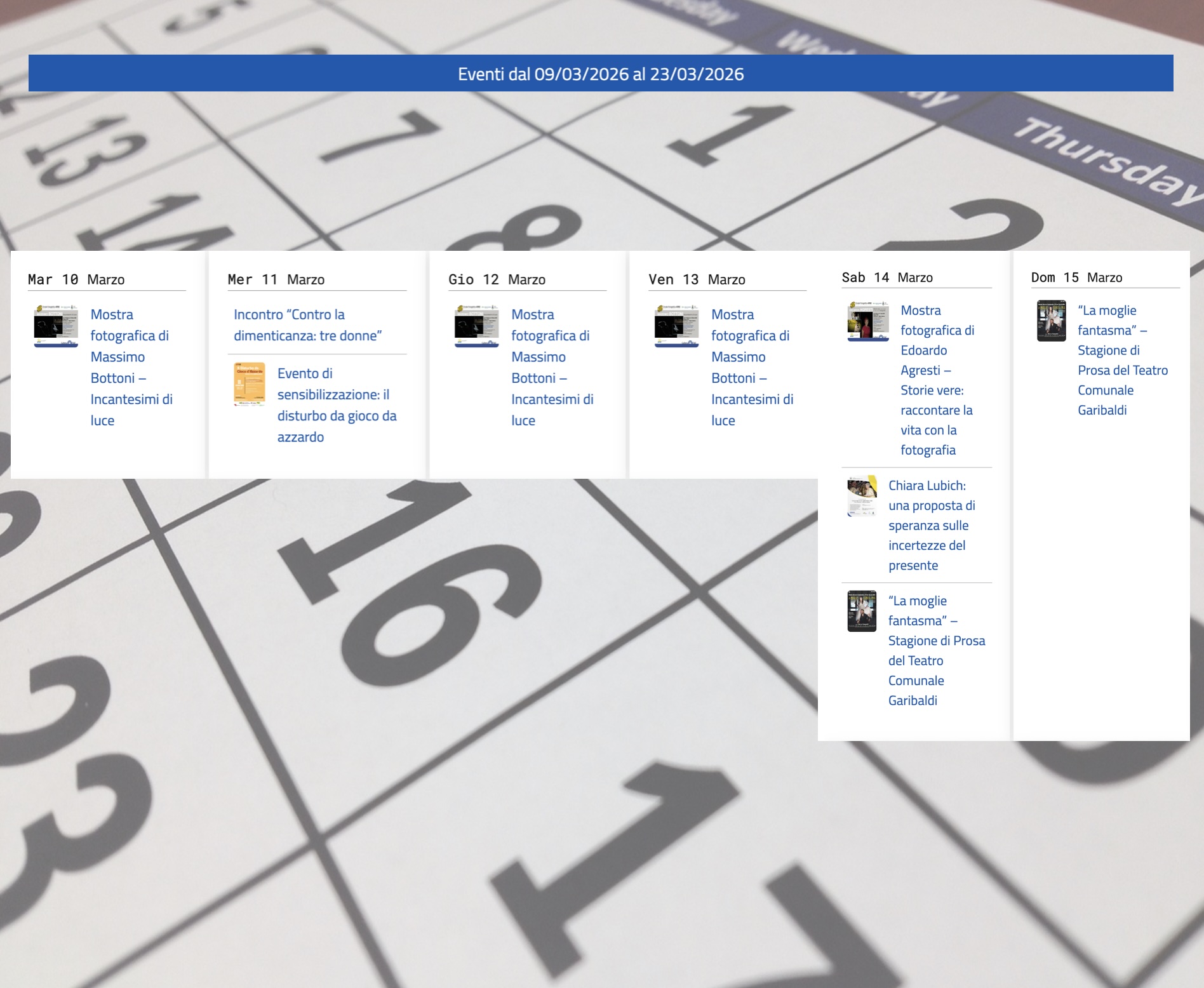 Ecco tutti gli appuntamenti in programma, organizzati dal Comune o realizzati con il suo sostegno