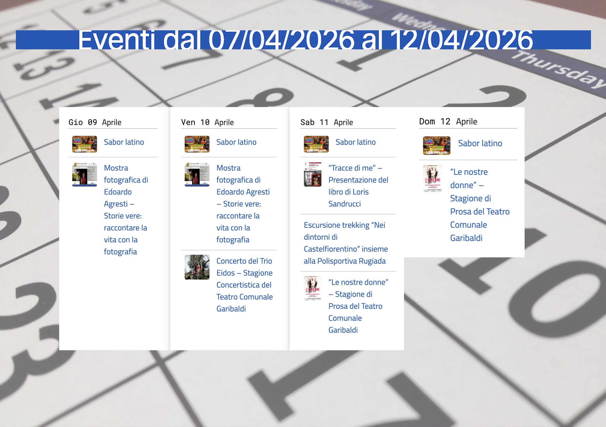Ecco tutti gli eventi in programma durante la settimana